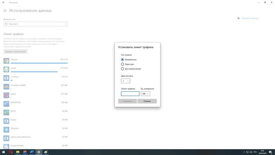 - Активируйте опцию "Установить лимит данных"