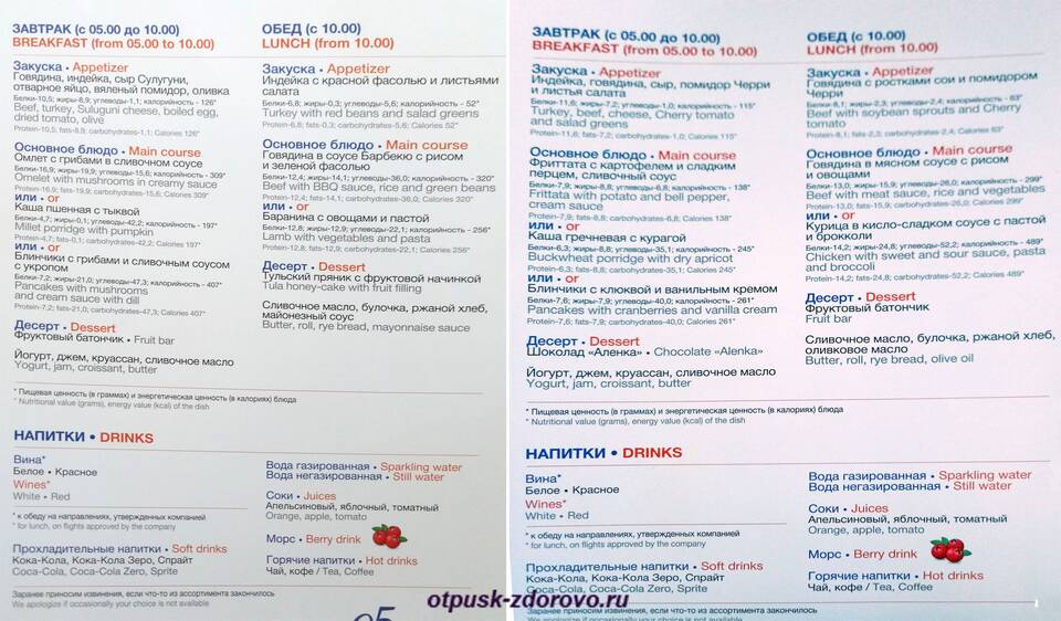 - Состав меню может меняться в зависимости от сезона и направления