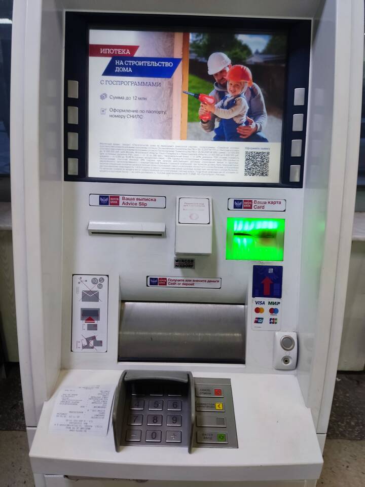 - Завершение наличных денег в банкомате